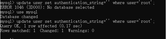 update user set authentication_string='' where user='root';