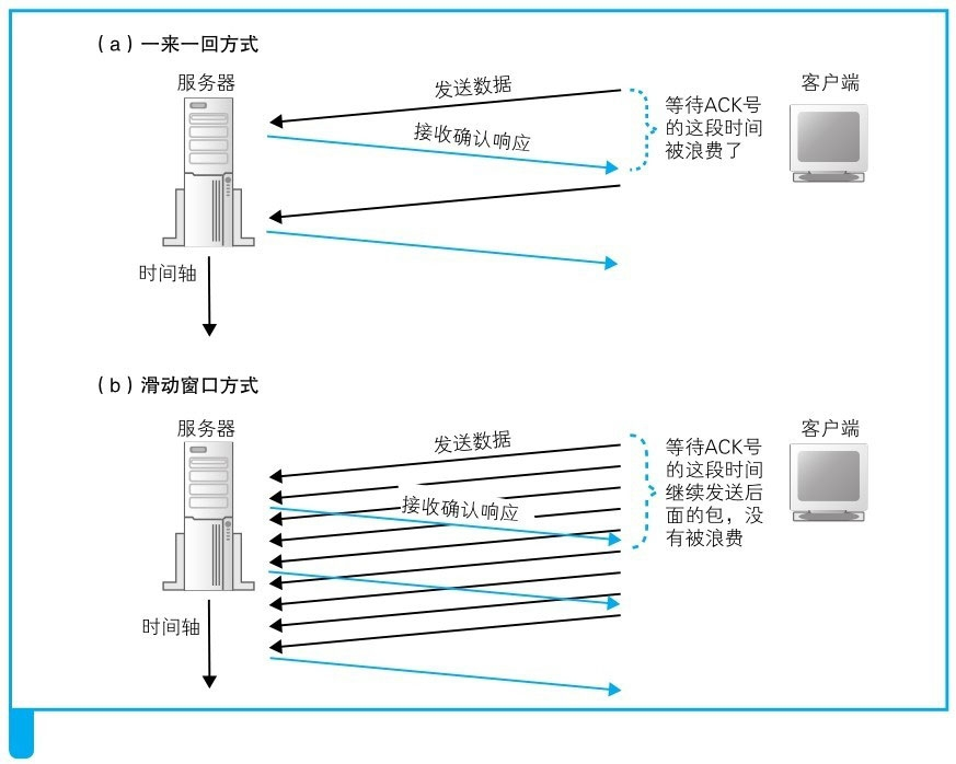 5. 滑动窗口,就是在发送一个包之后,不等待ACK号返回,而是直接发送后续的一系列包。这样一来,等待ACK号的这段时间就被有效利用起来了。