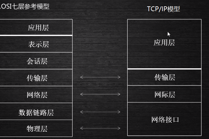 在网络通信中经常会用到TCP/IP网络模型,它有四层,下面是OSI网络模型与TCP/IP模型的对比