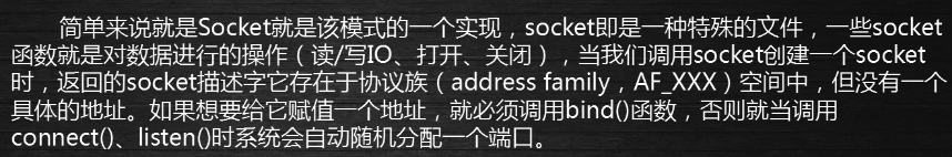 套接字(Socket)简单来说就是TCP/IP模式的实现,是在TCP/IP之上进行的封装: