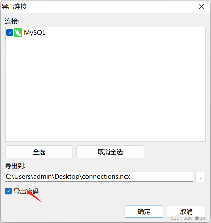 在弹出的页面选择需要导出的连接,一定要勾选导出密码