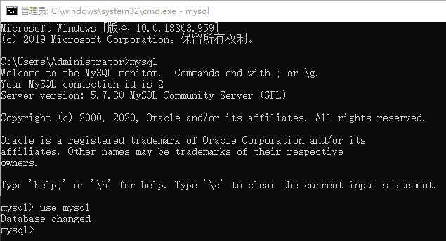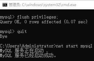 9.关闭原来第一个窗口,执行输入命令net start mysql