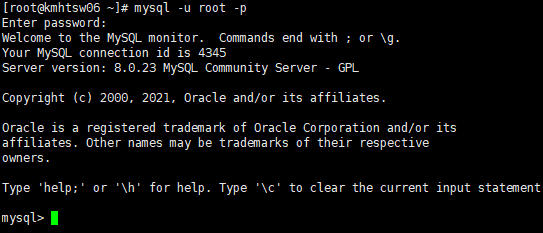 2、登录mysql ,输入 mysql -u -p 后,回车,输入mysql密码。