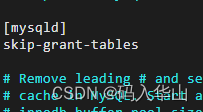 2. 操作上下光标移至 skip-grant-tables字段最左边,按键盘DELETE键 删除。