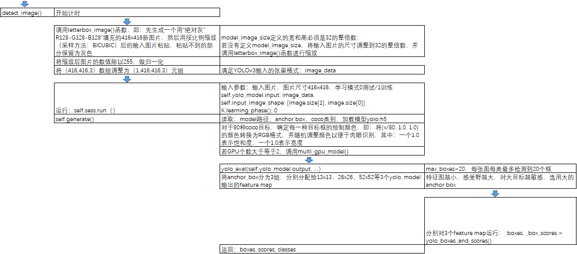 YOLOv3的目标识别的源代码流程大致如下: