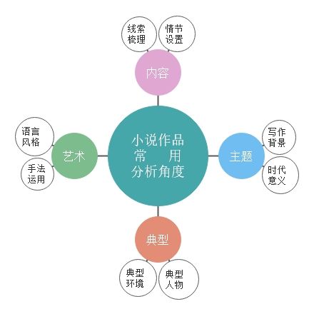 总之,我们都知道红楼梦造诣之深,否则也不会养活大批一代又一代红学家了。这么多繁杂的理解要点,同样用思维导图可以实现精简化。同样地也可以帮你更好理解并记忆文学作品。以下用了气泡图大致整理一些小说分析的角度。