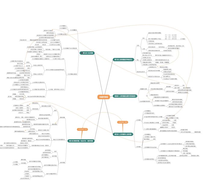 例如历史科目或涉及宏观时间阶段的知识,可以用时间线,但其他科目不一定合适。 以上为两个宏观框架型思维导图(完整导图可前往导图社区查看),适用于学习初期内容较多的学科,政治、心理学、传播学、法学等等科目或专业都很适合用思维导图搭建知识框架。