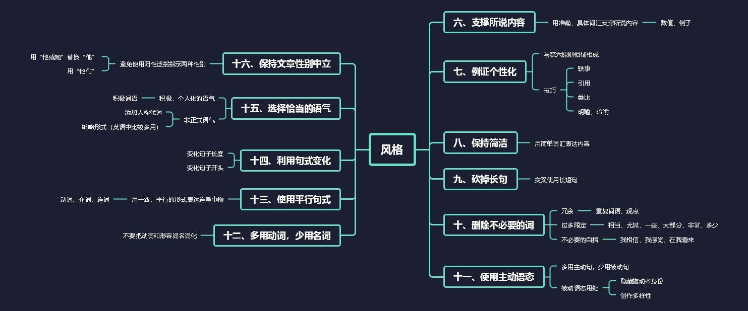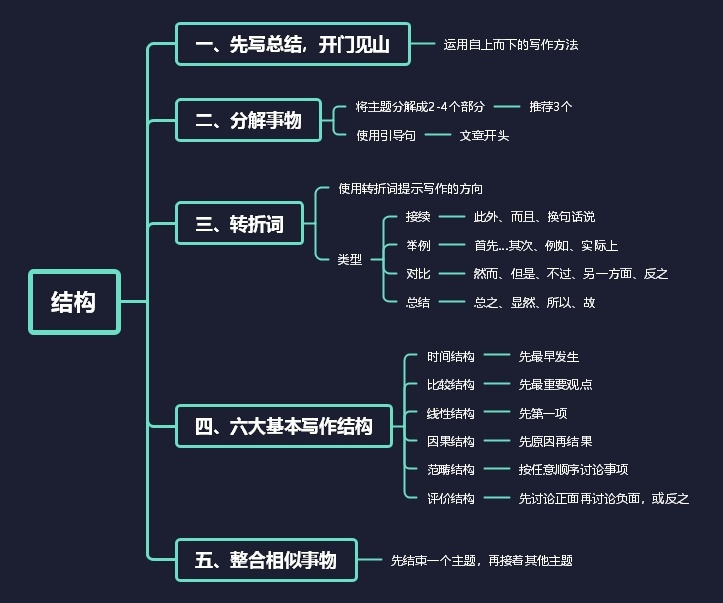 结构部分即前5个原则,该部分主要是为阐述如何在写作中保证结构清晰合理,从而读者能快速准确get作者想表达什么。