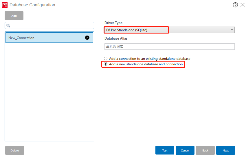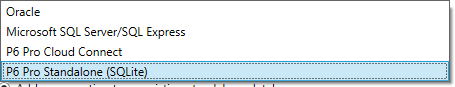 - P6 Pro Standalone(SQLite):SQLite数据库连接,单机连接