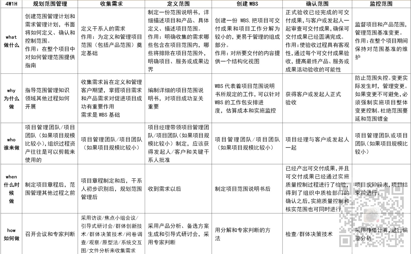 (1)规划范围管理: