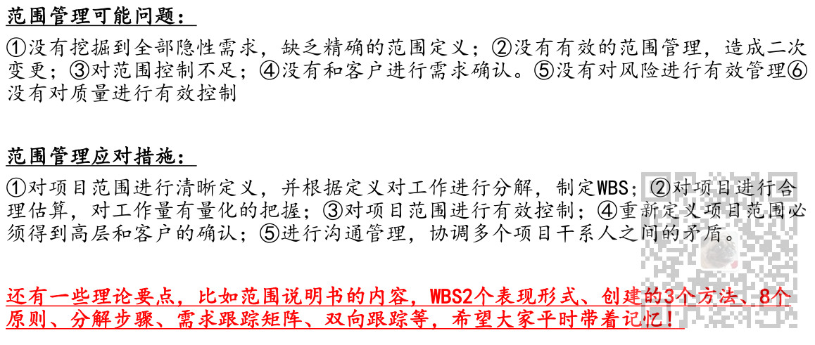 以上就是留胡子网络最近收集整理的关于信息系统项目管理师-项目范围管理考点笔记历年考点分布项目范围的6个过程4W1H范围管理概述规划范围管理收集需求收集需求的工具和技术简单总结定义范围创建工作分解结构(WBS)确认范围控制范围项目范围管理案例分析 的全部内容,更多相关信息系统项目管理师-项目范围管理考点笔记历年考点分布项目范围的6个过程4W1H范围管理概述规划范围管理收集需求收集需求的工具和技术简单总结定义范围创建工作分解结构(WBS)确认范围控制范围项目范围管理案例分析内容请搜索靠谱客的其他文章。
