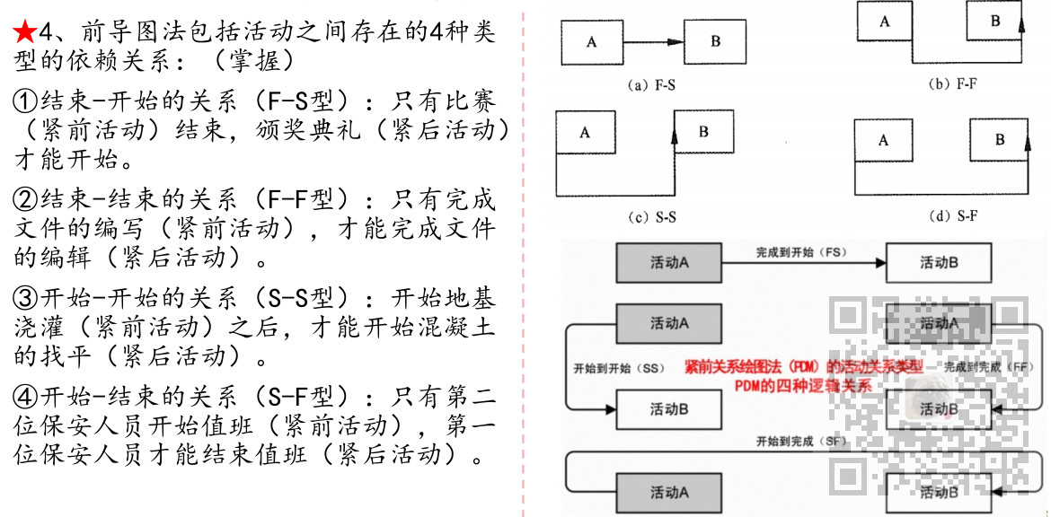 ②快速跟进:一种进度压缩技术,将正常情况下按顺序进行的活动或阶段改为至少