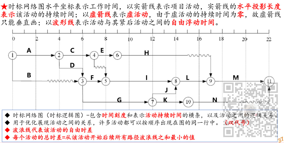 14、图形方式:横道图(也称为甘特图)、里程碑图、项目进度网络图、时标逻辑图
