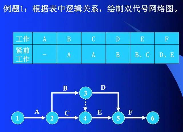 (2)本例的进度图为双代号时标网络图,表示进度的图还有单代号网络图、双代号网路图、甘特图等。