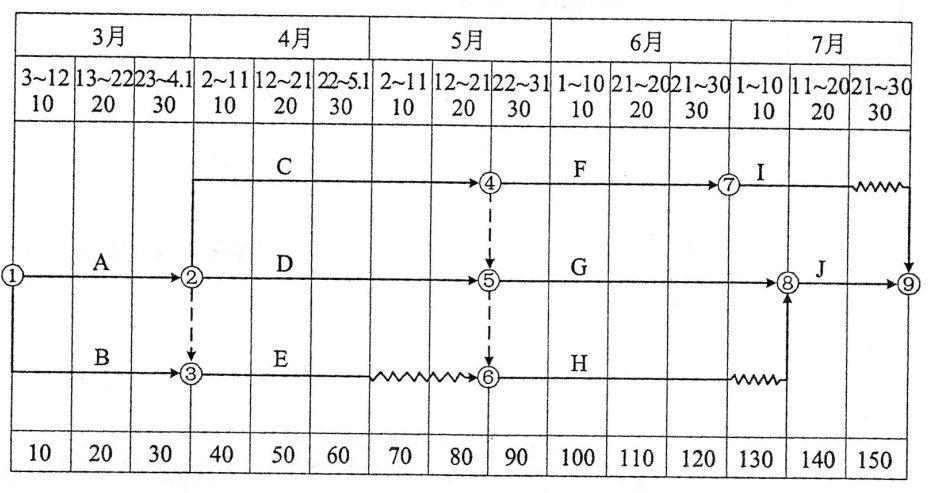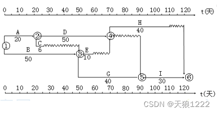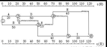 已知某公司项目由ABCDEGHI八个活动构成,项目工期要求为100天。项目组根据初步历时估算、各活动间逻辑关系得出的初步进度计划网络图如下图所示(箭线下方为活动历时)。