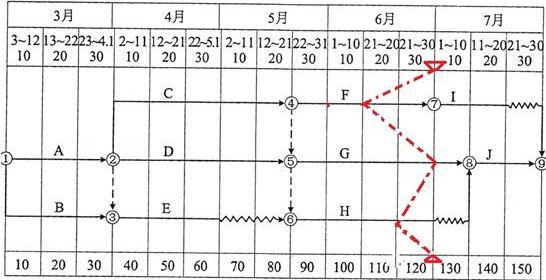 (1)实际工期:根据现场各项工作的实际持续时间,确定持续时间最长的线路即为实际的关键线路,关键线路上的持续时间之和为实际工期。