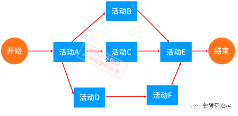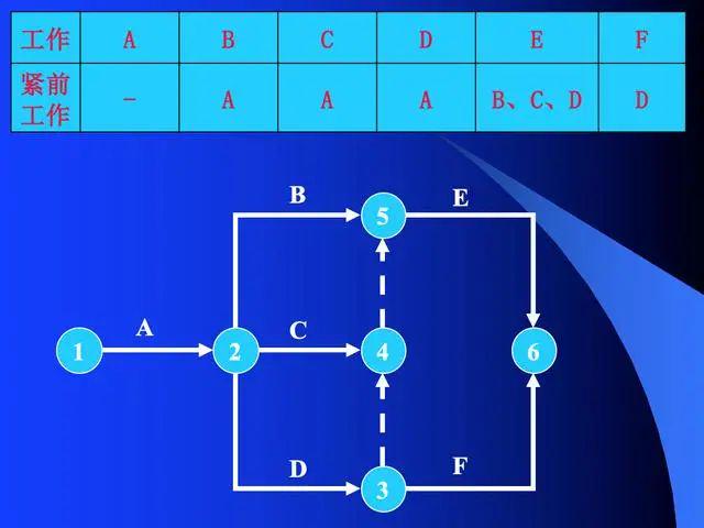 每个活动的最底部那行格子,是求最晚开始时间、最晚完成时间。从右往左推算。比如 从E开始算起,然后B、A