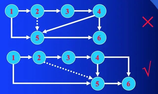 (2)补充虚箭线:共用一个班组、共用一台机械;