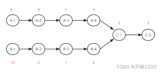 每个活动的第一行格子,是求最早开始时间、最早完成时间。