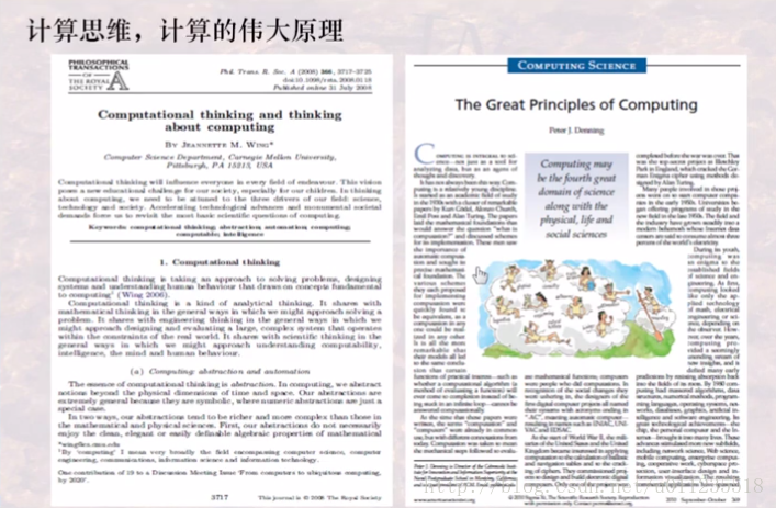 《computational Thinking》计算思维是运用计算机科学的基础概念进行问题求解、系统设计、以及人类行为理解等涵盖计算机科学之广度的一系列思维活动。