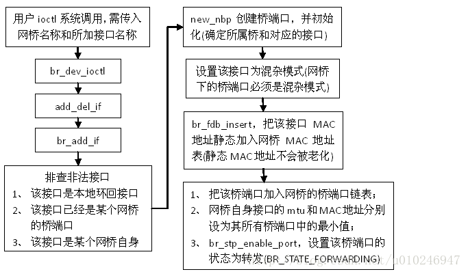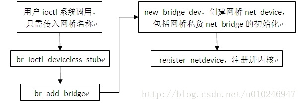 用户应用程序(典型如brctl)创建网桥的过程如下: