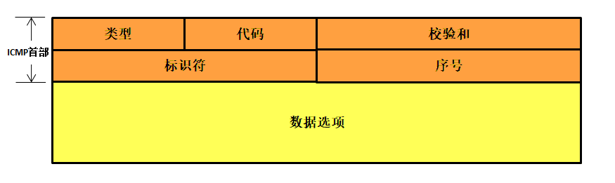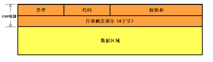 ICMP 报文与IP 数据报一样,都是由首部与数据区域组成,ICMP 首部是8 个字节,对于不同类型的ICMP 报文,ICMP 报文首部的格式也会有点差异,但是首部的前4 个字节都是通用的: