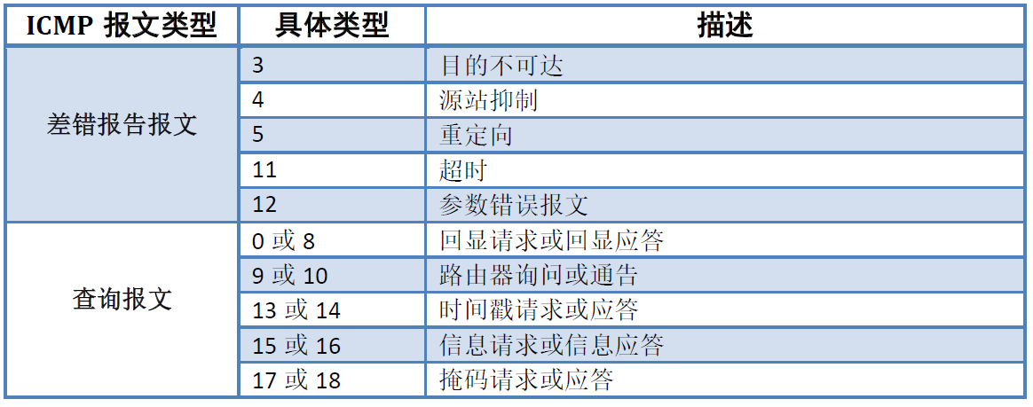 ICMP 报文有两大类型,可以划分为差错报告报文和查询报文,差错报告报文主要是用来向IP 数据报源主机返回一个差错报告信息,而这个差错报告信息产生的原因是路由器或者主机不能对当前数据报进行正常的处理,简单来说就是源主机发送的数据报没法到目标主机中,或者到达了目标主机而无法递交给上层协议。
