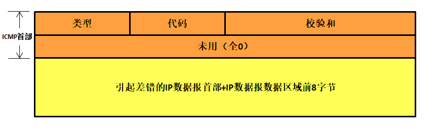 这个对于我们来说也不太重要,就简单看看其格式,实际上ICMP 源站抑制报文的格式与ICMP 目的不可达报文的格式是一样的,但代码字段为0。