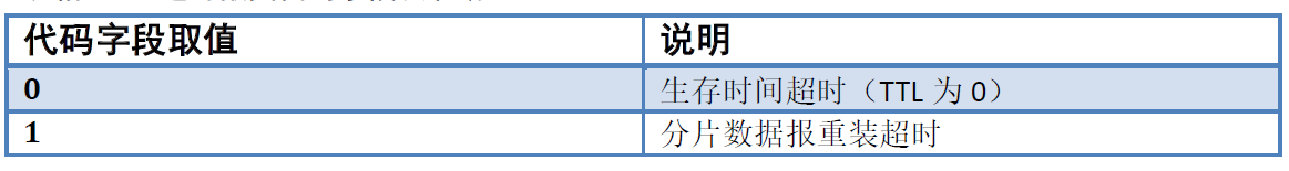 IP 数据报首部有一个TTL 字段,就是防止IP 数据报永远在网络中漂流,当数据报每被转发一次,TTL 的值就减一,如果TTL 为0,那么路由或者主机就会丢弃该数据报,并且返回一个ICMP 超时报文到源主机中;此外,在数据报分片重装的时候也使用了ICMP报文,当所有的IP 分片数据报无法在规定的时间内完成重装,那么主机也会认为它超时了,那么这些数据报就会被删除,同时也返回一个ICMP 超时报文到源主机中,ICMP 超时报文格式与ICMP 目的站不可达报文格式一样,但代码字段中有两种取值.