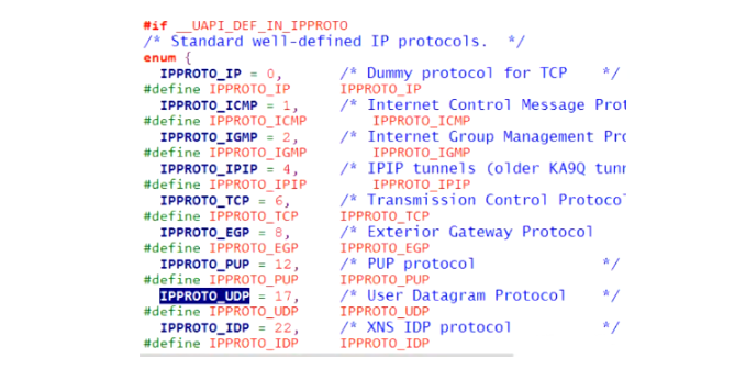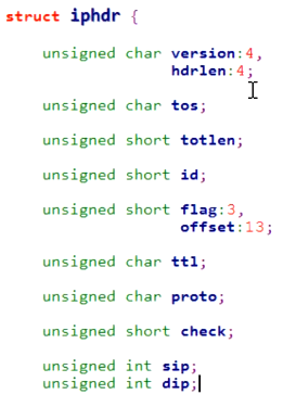 这里这个以太网的头是多少?14个字节,然后 IP头现在是多少?20个字节,然后udp的头是多少?8个字节。 但是现在这个 sizeof(udppkt)有多少? 在我们现在这个情况下面等于多少? 等于44号,为什么? 这里会有自己对齐的问题,这前面是4字节,14字节我们一块内存以4个字节 对齐为例,前面4个字节再4个字节,再4个字节,再加上前面2个字节,这里面合到一起14个字节,也就是这一块。