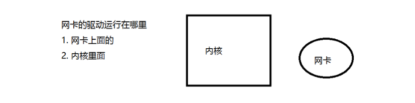 这么一个东西叫做驱动叫做网卡驱动,能理解这个概念,一定跟大家讲的网卡驱动是运行在内核里面的,它是使得网卡能够正常工作的,以及能够去接受网卡的数据,