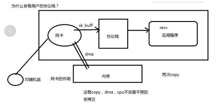 这里跟大家讲的大家可以看到从网卡里面的数据到达内存中间,然后应用程序是直接在内存中间可以直接读取这个数据的直接读取