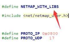 这里面在紧接IP包的时候它是顶齐,从这里开始再分配,这里就留下了两个字节的一个空窗期,这中间会有小窗口,这两个字节里面是没有数据的,所以在 sizeof(udppkt)后 里面是等于44的,不是42, 因为这地方有一个小窗口,为了保证就是我们接收的是一个完整的数据包,,一个packet它中间是没有这两个之间的空空格期的,所以在这里我们要对它加上一个对齐,以一个字节的方式对齐,netmap编译的时候,请代表要加上这个东西,就是