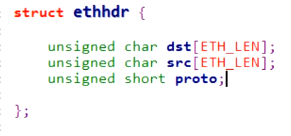 好6个字节目的地址,再加上6个字体的原地址,再加上1个协议, 这就是关于以太网的头 6个字节的目的地址,6个字节原地址,请大家注意这1个数组包 大家等一下我们去取的时候 这个我们取出来这么一个一帧数据包,这个数据包按照我们这里应该用数组吧 ;注意这个内存啊这个内存在排布的时候, 结构体的使用它跟数组是一样的,是一样,就是对于一块内存的使用,比如同样是8个字节, 同样是14个字节,那我们是用数组去存也是可以的,我们用结构体去存它也是ok的,好会不会有对齐的问题肯定有。 好,这是关于以太网头,