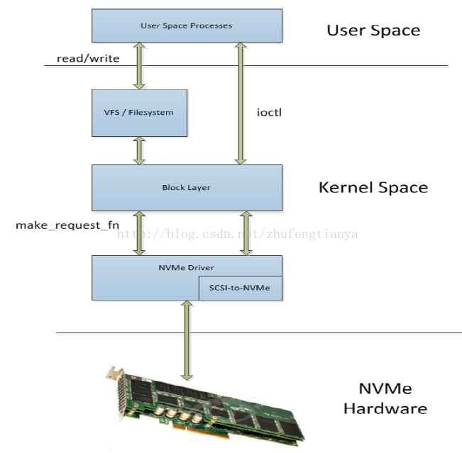 从代码上来看,NVME的协议栈直接从Block层下来,不再像SATA那样有着复杂的分层。而原来的一些SCSI的东西,则是通过ioctl下来,经过一个叫做nvme-scsi.c文件进行SCSI-to-NVMe的转换,转换为NVME的Command。
