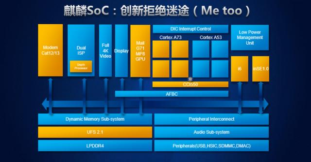再次,现在我们口中所说的处理器,已经不是过去那种单指cpu的年代了,确切的说应该是指SoC。SoC(System on Chip): 称为系统级芯片,也称为片上系统,意指它是一个产品,是一个有专有目标的集成电路,其中包含完整系统并嵌入软件的全部内容。官方定义为将微处理器、模拟IP核、数字IP核和存储器(或者片外存储接口)集成在单一芯片上。——简单的比喻一下,如果把CPU看成人体的大脑,那么SoC就是我们人的身体总成(还要包括各种器官、组织)。即GPU、总线、显示加速器、ISP、视频编解码器、音频处理器、Memory控制器、传感器处理单元,以及DDR、Flash、显示接口、Camera接口、射频RF、USB等对外接口。要把这些元器件集成在一起,构成一个整体。而且还要保证各个元器件之间能够协调、稳定的运行,这样的设计技术所投入的研发费用并不是每个厂商能够接受的[2]。