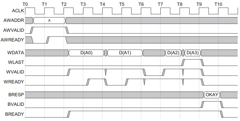 | WREADY | 从机 | 表明从机可以接收写数据 |