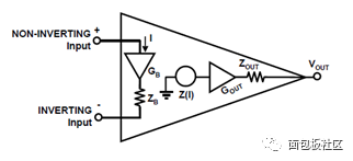因为,CFA和VFA(电压反馈运放)不一样,读书时学的运放,基本上老师都是拿VFA进行举例和讲解。下图是CFA运放的模型: