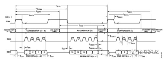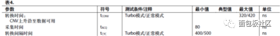 先看ADC的指标Tcycmin=500ns和Tacqmin=80ns,这是颗SAR型ADC,速度能上Mbps,还算挺快的。所以,它连续采样10次,所用时间也才10μs左右。