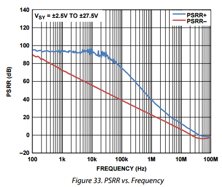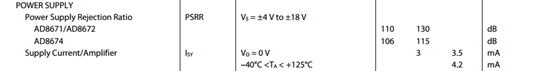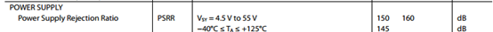 很可惜,这个指标是指电源电压的直流变化,而不包括电源电压交流的变化(如纹波),在交流情况下,这个指标会发生非常大的恶化。Spec.里面提到的只是直流变化,交流变化在后面图示里面,一般情况下,非资深工程师对待图示都是滑滑地翻过去。