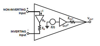 因为,CFA和VFA(电压反馈运放)不一样,读书时学的运放,基本上老师都是拿VFA进行举例和讲解。下图是CFA运放的模型: