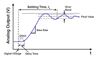 而运放从信号输入到输出,并不是一个无延时的过程,而是一个有延时还带震荡的过程,同时,这个过程的时间还会因为后级线路的PCB设计而增大。如下图: