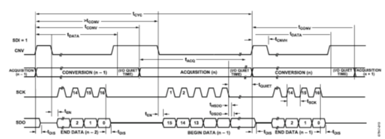 先看ADC的指标Tcycmin=500ns和Tacqmin=80ns,这是颗SAR型ADC,速度能上Mbps,还算挺快的。所以,它连续采样10次,所用时间也才10μs左右。