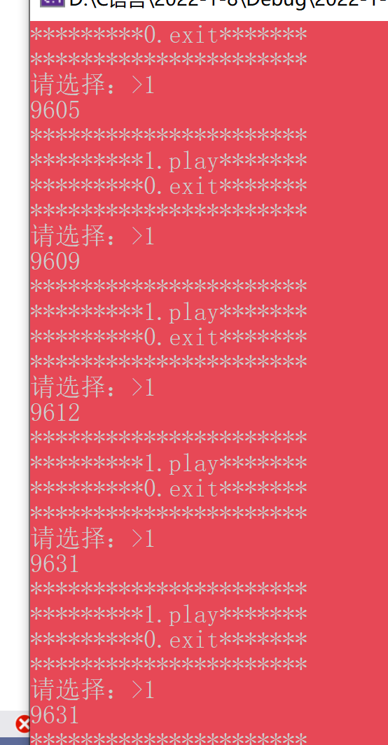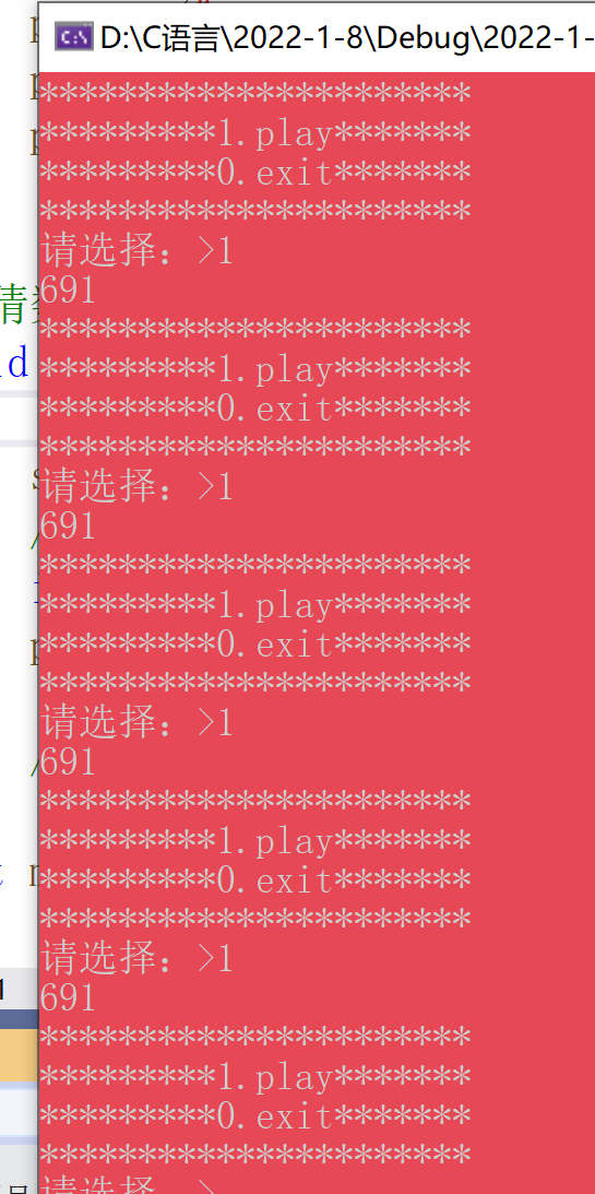 1、实现主函数和菜单函数 玩家选1开始游戏、选0结束游戏、其他重新选择