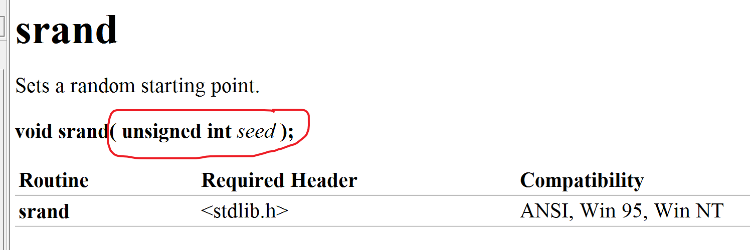 发现是一个长整型或一个整型,而srand参数需要的是unsigned int (可以翻看上面图片)。