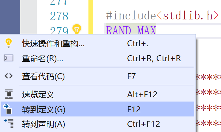 当我们引入#include<stdlib.h>头文件就能看见RAND_MAX的定义