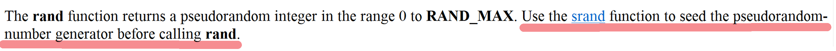 图中标记的那句话的意思是:在调用 rand 之前需要先调用 srand函数去设置随机数的生成器。