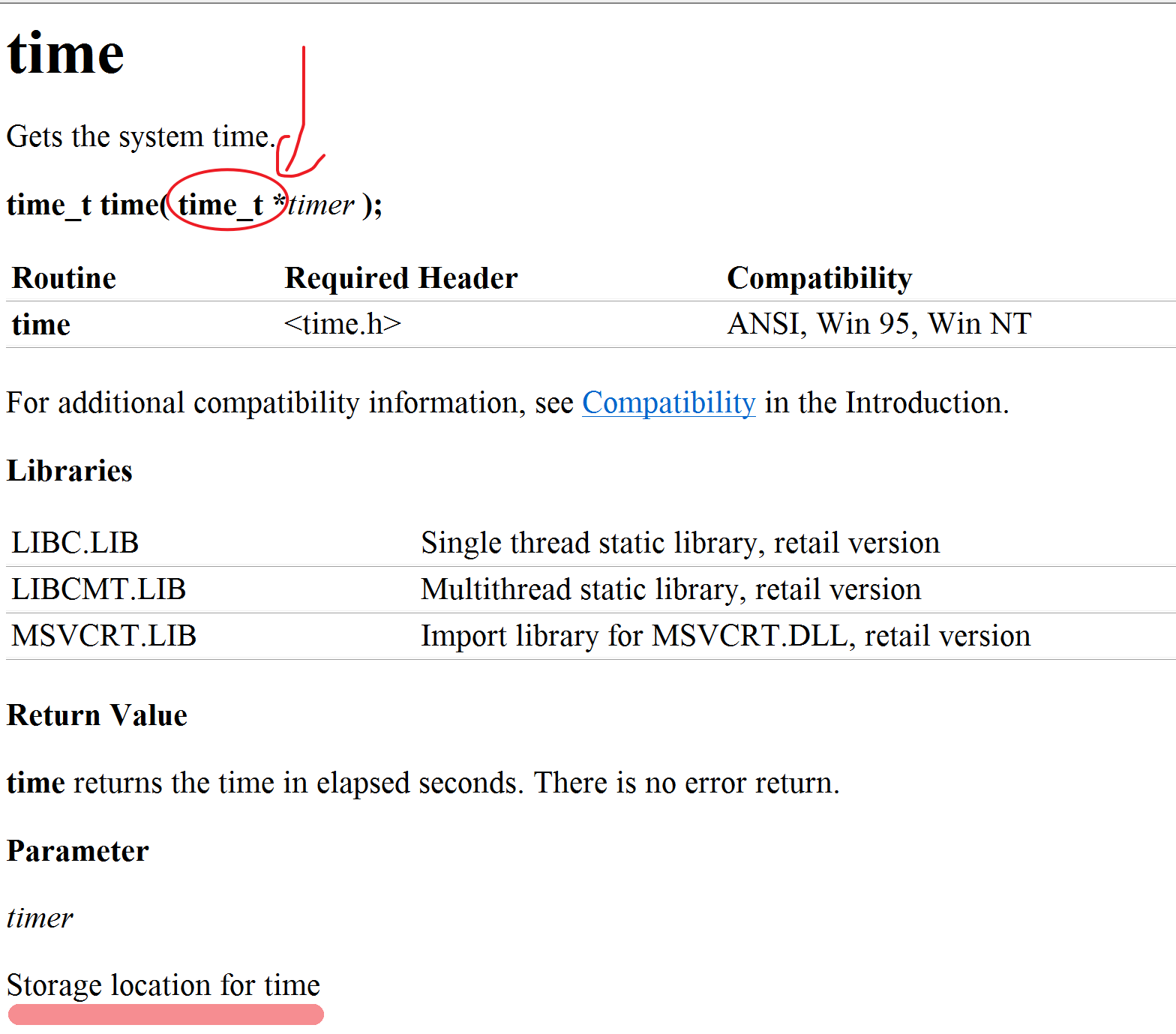 什么意思呢,就是我们可以在函数外面可以创建一个参数例如: time_t* t;我们可以把‘t’的地址传给time函数,然后time函数就把时间戳的时间放到‘t’里面 。当然这个参数我们也可以不用,可以传入空指针NULL。