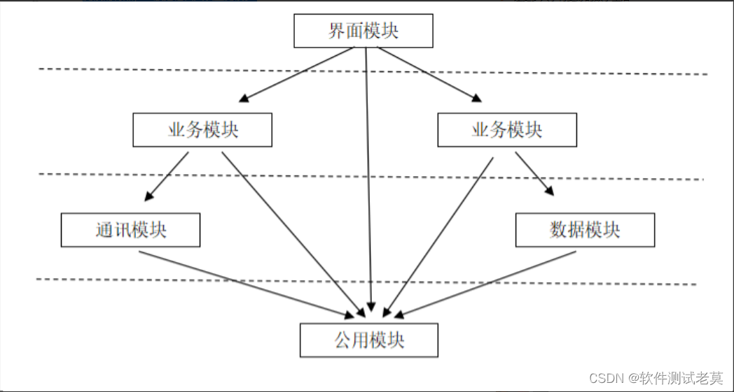 软件概要(高层)设计又叫架构设计,架构设计中极重要的一个部分就是接口关系图,集成测试大体上就是依赖接口关系图和模块接口来进行测试。在一个设计良好的系统中,软件的接口关系图应该是一个无环有向图(分层的图)。