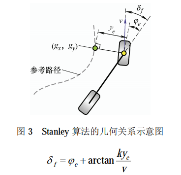 - 基于几何学模型:指无人驾驶车辆转向操纵时的几何关系,其中包括车辆与参考路径间的相对位姿关系和阿克曼转向几何关系。基于几何学模型的无人驾驶车辆路径跟踪控制的经典算法有纯追踪算法和Stanley 算法。